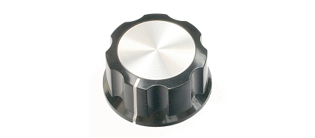 Fluted knob, průměr 33 mm, výška 16 mm . Hliníkový top. Osička 6,3 mm. Šroubek.